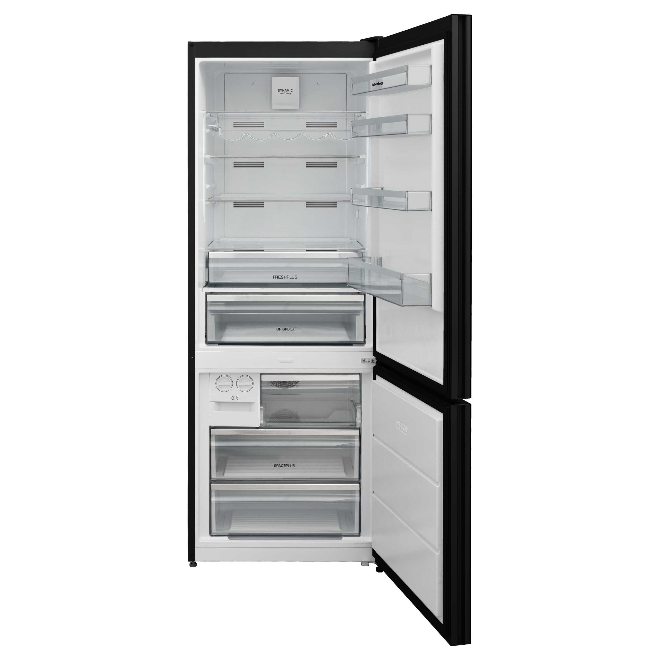 Специальный вентилятор в холодильной камере обеспечивает перемешивание воздуха и соответственно равномерное распределение температуры. Также динамическая система способствует уменьшению, смешиванию запахов в холодильнике и быстрому охлаждению большого количества продуктов.