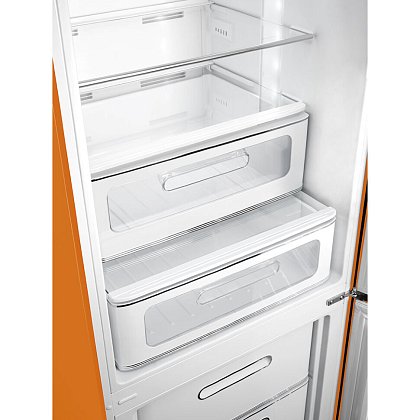 Холодильник SMEG FAB32ROR5 предназначен для кратковременного хранения различных готовых блюд, охлаждённых продуктов и напитков, а также для заморозки и длительного хранения замороженных продуктов и полуфабрикатов. Полки изготовлены из закалённого стекла, благодаря чему выдерживают большую нагрузку. Полки на дверцах выполнены из пластика. Данная модель идеально подойдёт для авторских интерьеров в уникальном стиле или для кухонь в классическом исполнении.