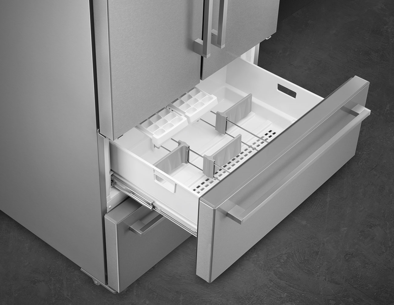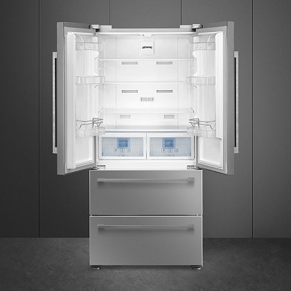 Side-by-side холодильник SMEG FQ55FXDF предназначен для кратковременного хранения различных готовых блюд, охлаждённых продуктов и напитков, а также для заморозки и длительного хранения замороженных продуктов и полуфабрикатов. Полки изготовлены из закалённого стекла, благодаря чему выдерживают большую нагрузку. Полки на дверцах выполнены из пластика. Данная модель идеально подойдёт для просторной кухни, выполненной в современной стилистике.