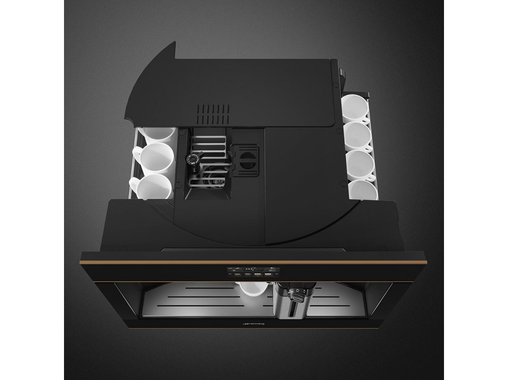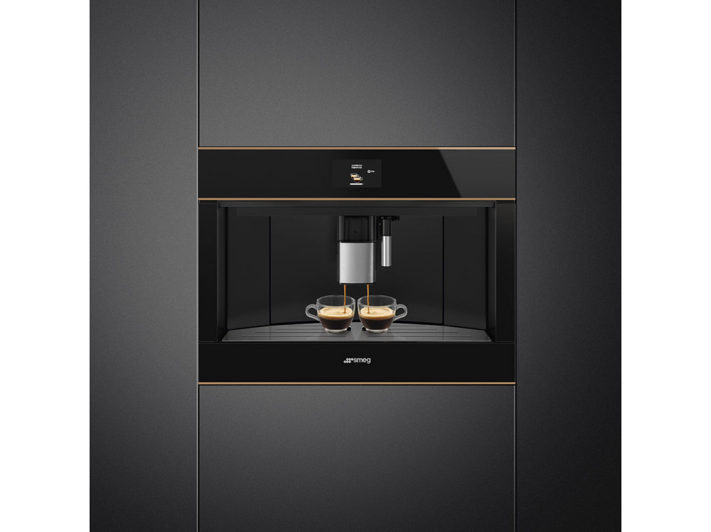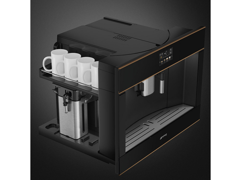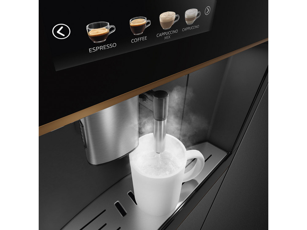 Встраиваемая кофемашина SMEG CMS4604NR, выполненная в современном дизайне, подчеркнёт индивидуальность интерьера и станет настоящим украшением Вашей кухни в квартире или загородном доме. Предназначена для приготовления эспрессо, капучино и других кофейных напитков.