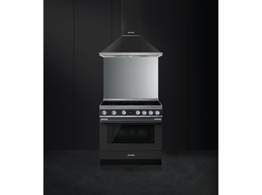 Варочный центр Smeg представлен в цвете «антрацит». Прибор оснащен пятью индукционными зонами приготовления разного размера и 10 режимами нагрева в духовом шкафу для комфортной готовки разнообразных блюд – от тушеных овощей до мяса или птицы на вертеле. Функция Booster позволяет временно увеличивать мощность конфорки, например, для быстрого закипания воды. Пиролитическая система очистки делает уход за камерой очень простым – после выбора нужной программы, духовка разогревается до 500 градусов Цельсия и остается только смахнуть пепел.