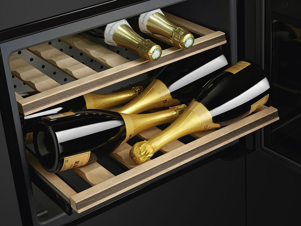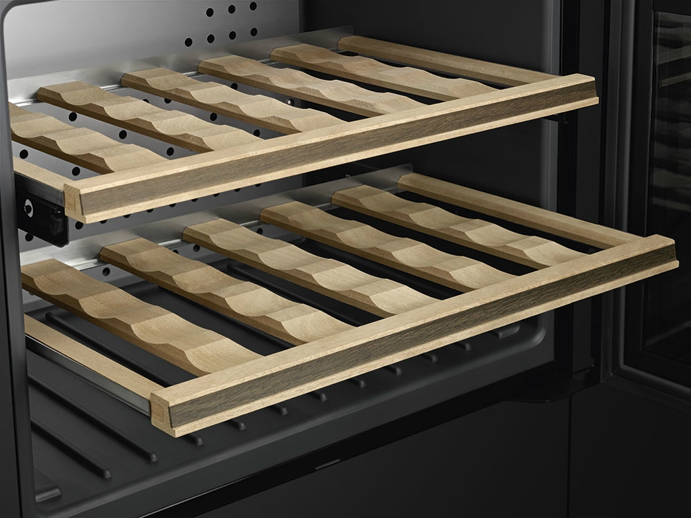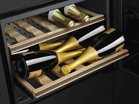 • Некоторые полки можно снять, что позволяет хранить до 21 бутылки объёмом 0,75 л