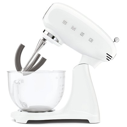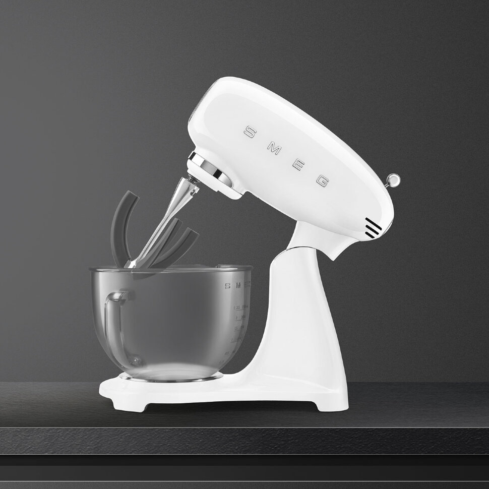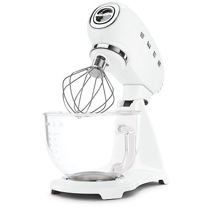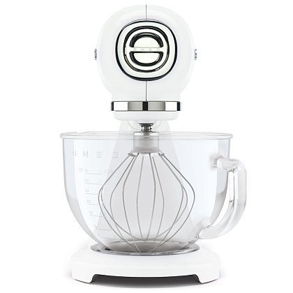 Планетарный миксер SMEG SMF13WHEU, выполненный в стиле 50-х годов, подчеркнёт индивидуальность интерьера и станет настоящим украшением Вашей кухни в квартире или загородном доме. Предназначен для приготовления кремов, муссов, соусов, пюре и жидкого теста. Применение специальных насадок позволяет существенно расширить ассортимент приготавливаемых блюд. С их помощью данную модель можно использовать в качестве тёрки или мясорубки, а также для приготовления различных блюд итальянской кухни.